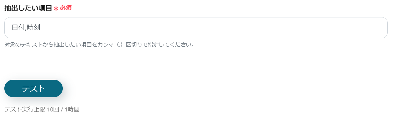 今回は、「日付」と「時刻」を抽出するので、以下のように設定しましょう。