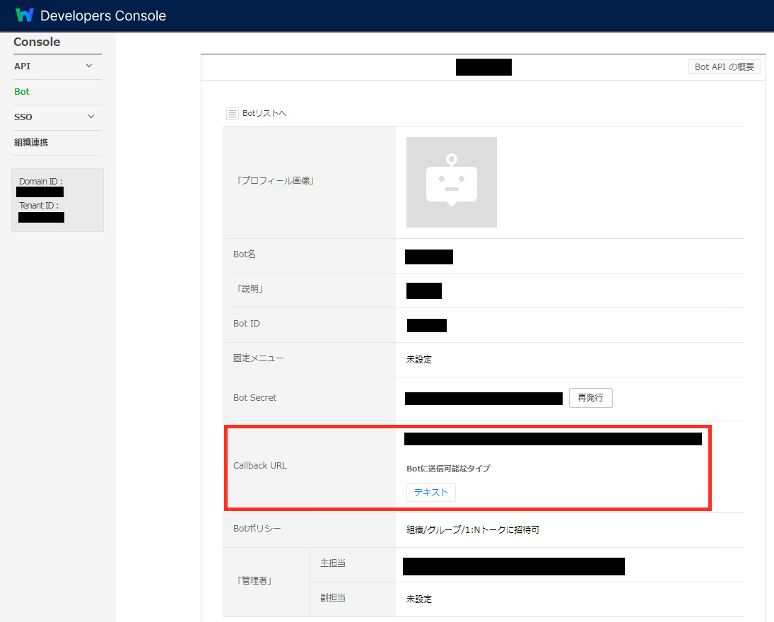 こちらに、LINE WORKSのCallback URLを設定してください。