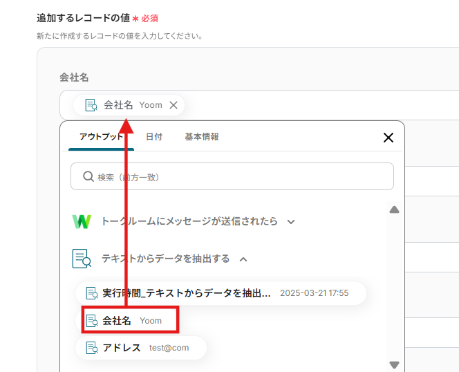 ステップ4:LINE WORKSのテキストからデータを抽出する設定