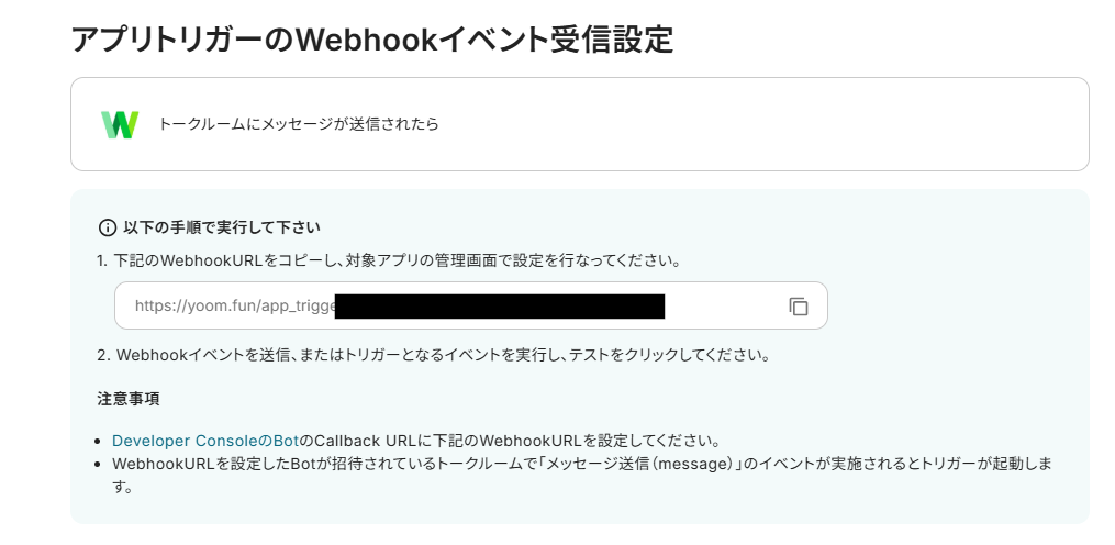 3.アプリトリガーのWebhookイベント受信設定をします。