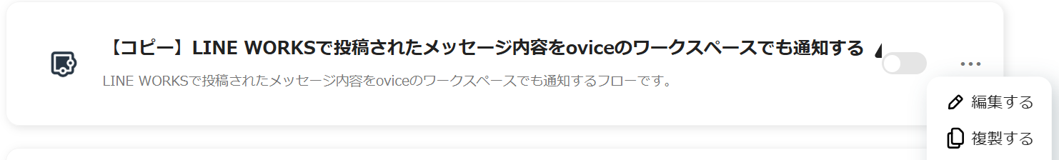 マイアプリ登録が完了したあと、「LINE WORKSで投稿されたメッセージ内容をoviceのワークスペースでも通知する」フローボットを作成していきます。