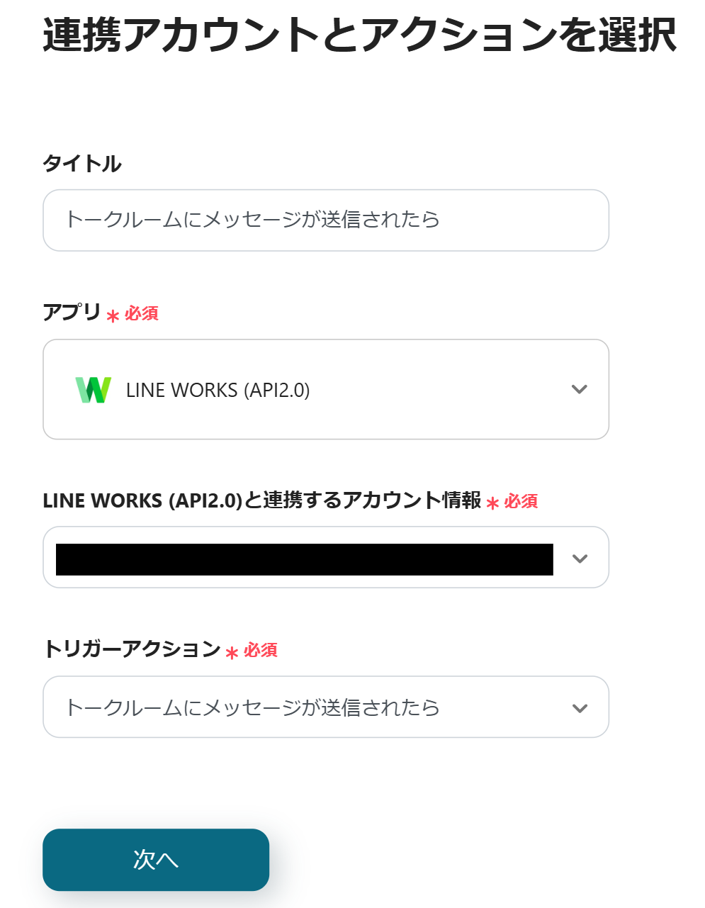 ステップ3:フローの起点となるLINE WORKSのトリガーを設定