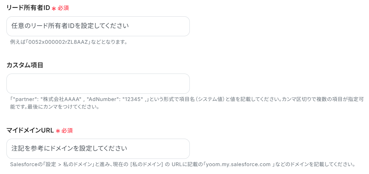 今回はSalesforceで以下の項目を設定したいので、以下のように設定しました。