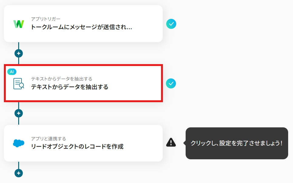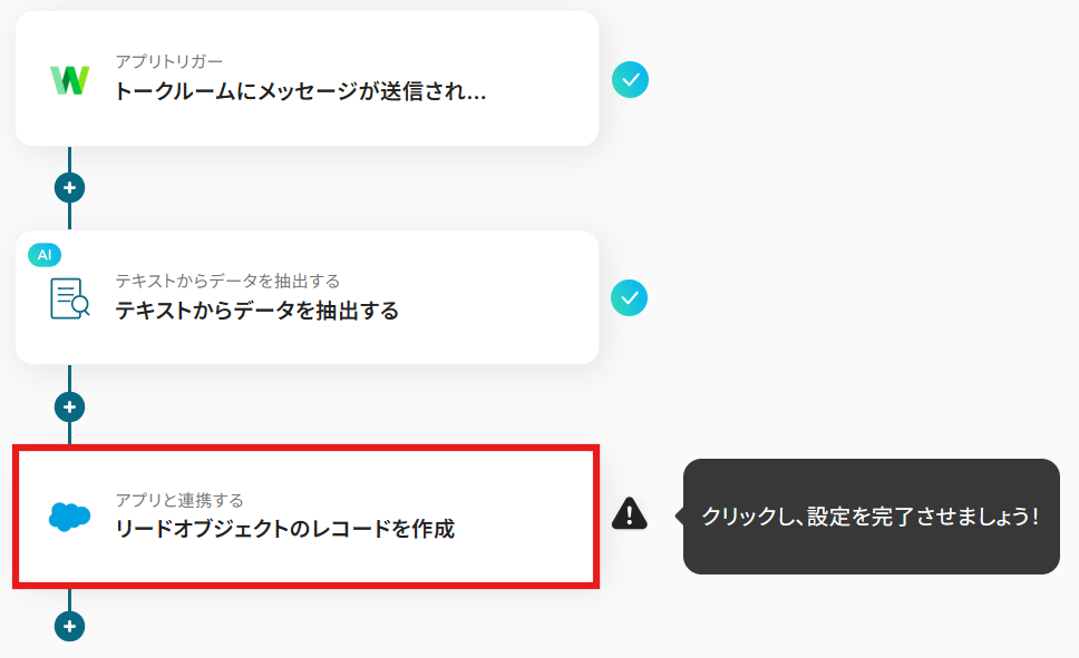 LINE WORKSで受け取ったメッセージから必要情報を抽出し、Salesforceで新しいリードを作成します。