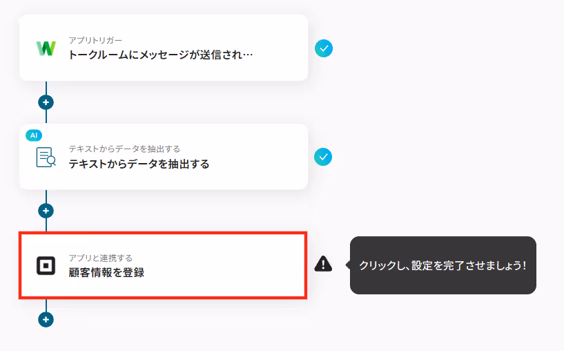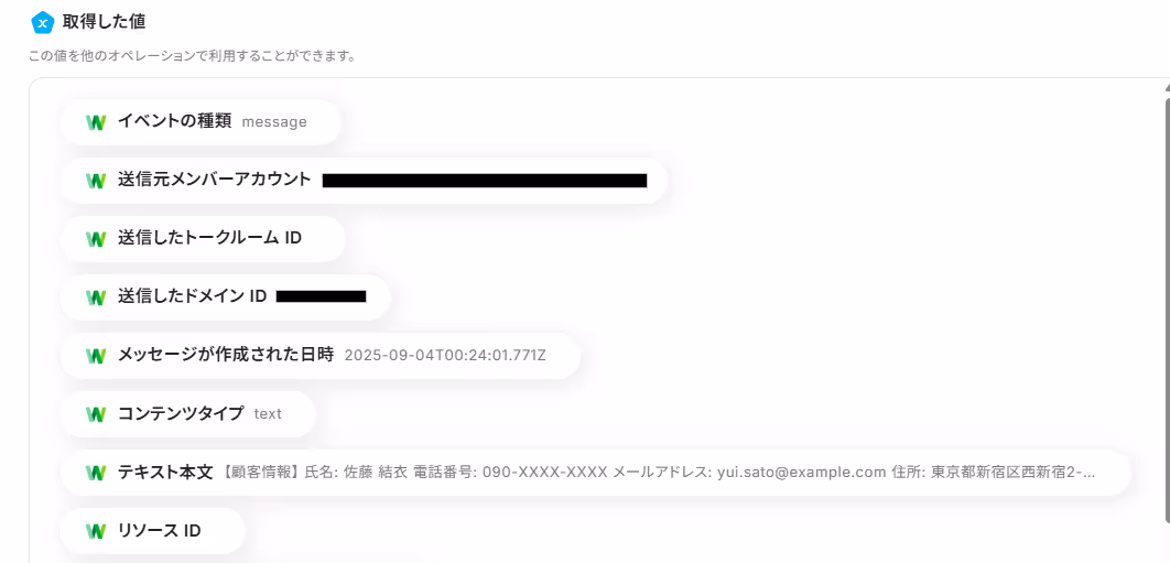 LINE WORKSで受け取ったメッセージからSquareに顧客登録するための必要事項を抽出します。