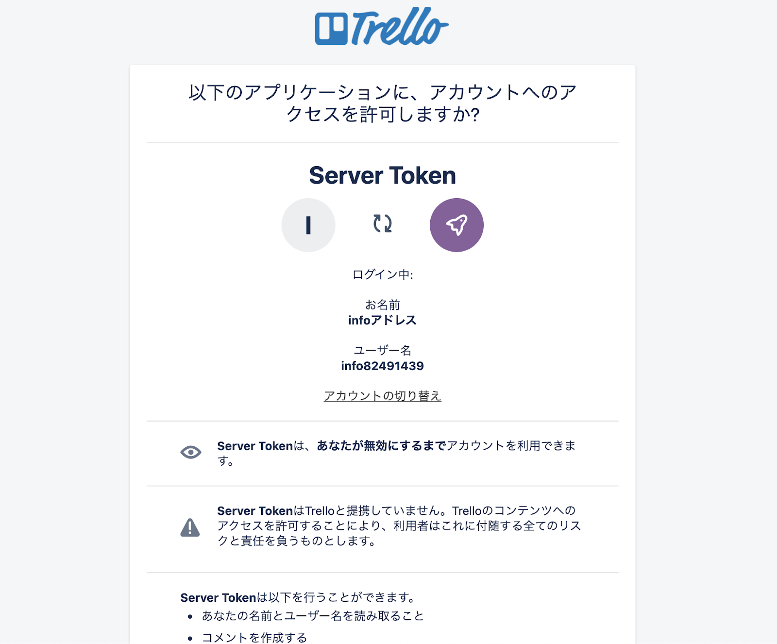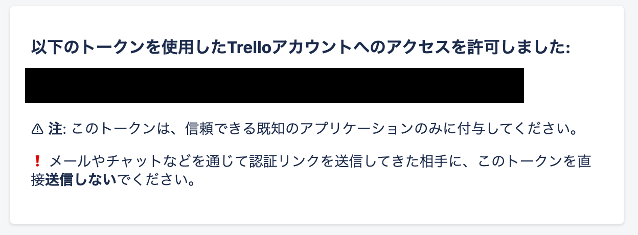 事前にTrelloにログインし、以下のページからアクセストークンを生成してください。