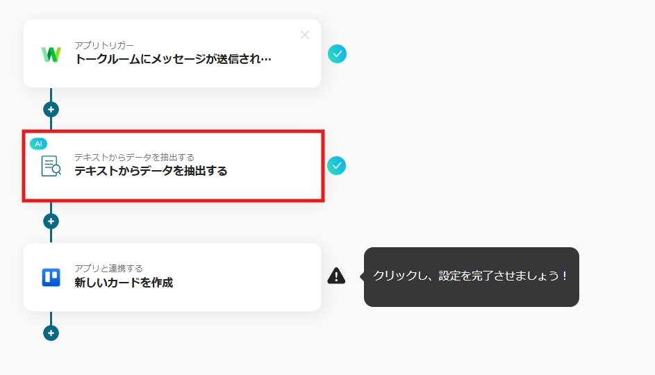 1) フローに戻り、「アプリと連携する テキストからデータを抽出する」のアイコンをクリックします。