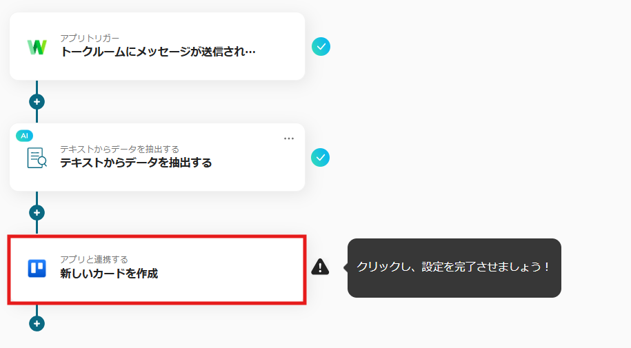 1) フローに戻り、「アプリと連携する 新しいカードを作成」のアイコンをクリックします。