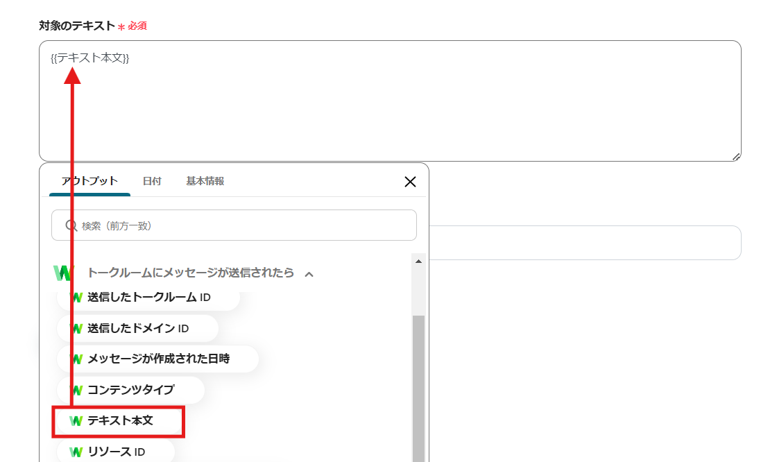先ほど取得したLINE WORKSのアウトプット情報を活用して入力できます。