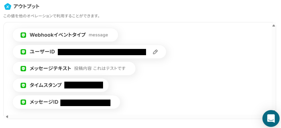 LINEメッセージから抽出した内容がアウトプットに反映されているか確認してください。