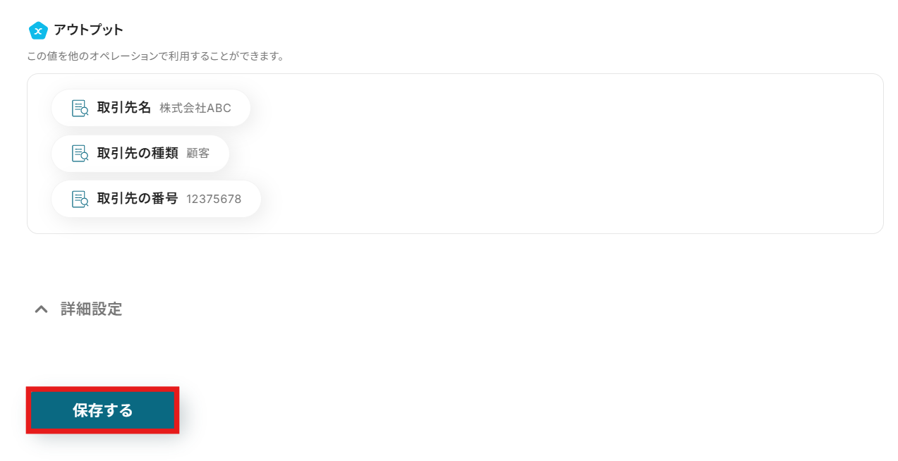 テストが成功したら、「保存する」をクリックするのを忘れないようにしましょう!