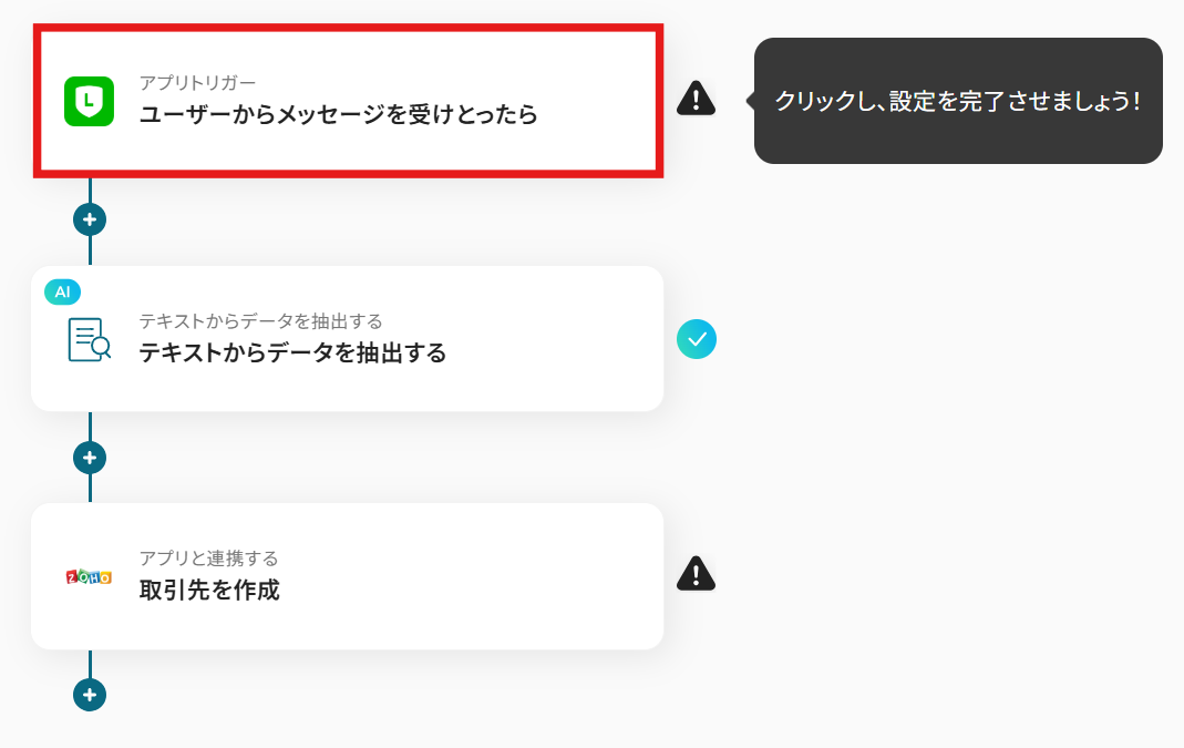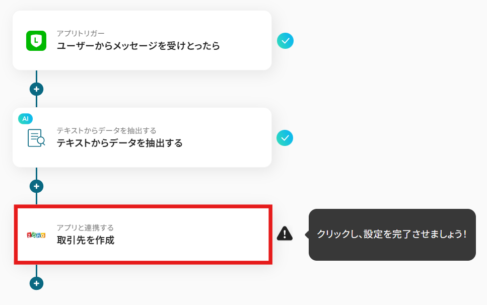 このワークフローでは、LINEで受信したメッセージを自動的に解析し、Zoho CRMに取引先として登録することが可能です。この自動化により、業務の効率化と正確性の向上が期待できます。