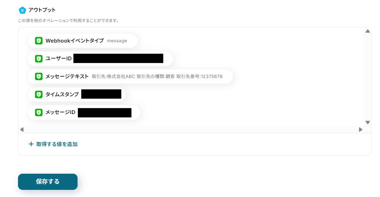 このワークフローでは、取引先が追加されるたびに自動的にLINEへ通知が送信することが可能です。この自動化により、情報共有が漏れなく行われ、チーム全体の連携が強化されます。