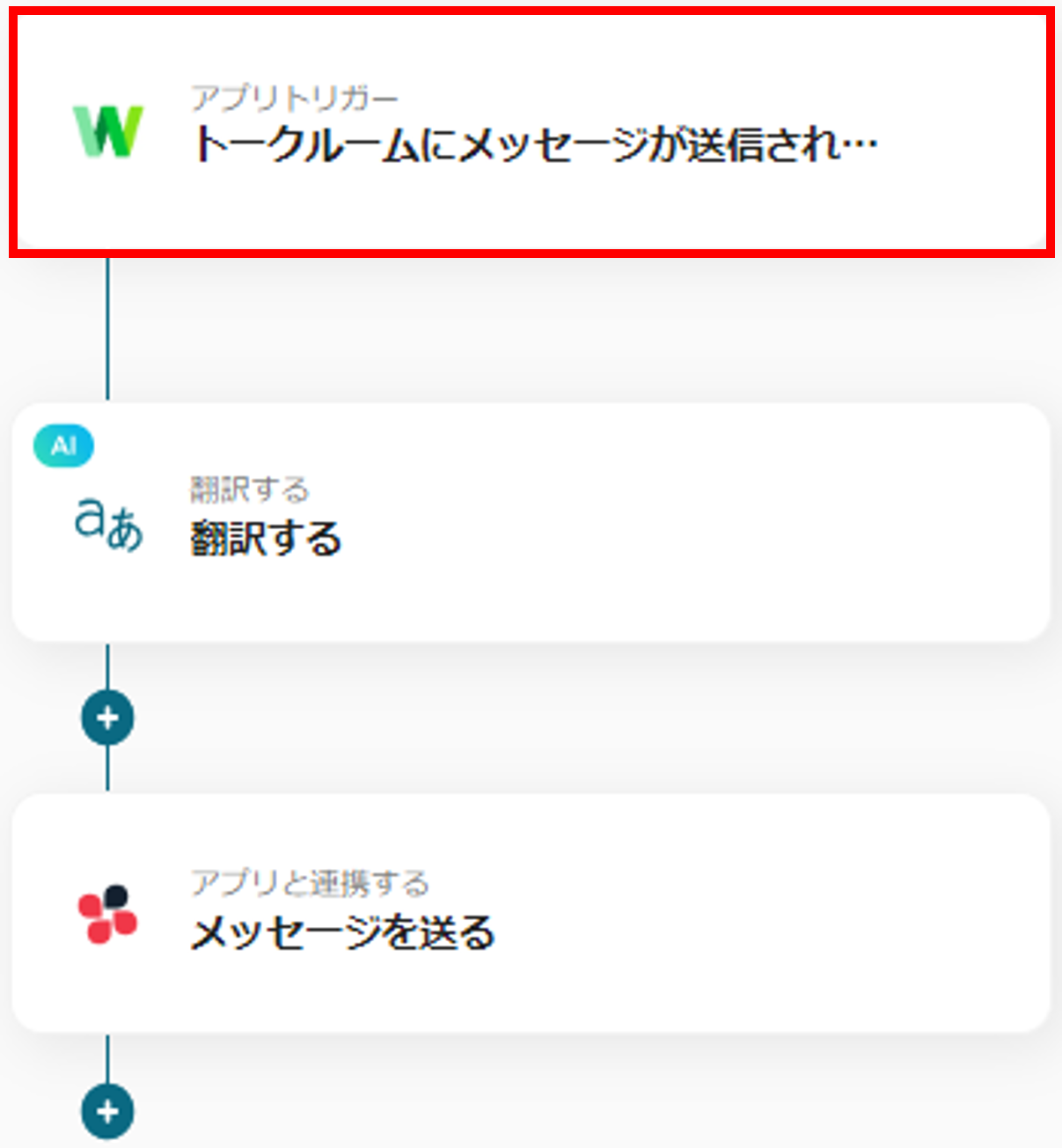 ここから、「LINE WORKSで投稿されたメッセージを翻訳して、翻訳版をChatworkに投稿する」フローの設定についてご紹介します。