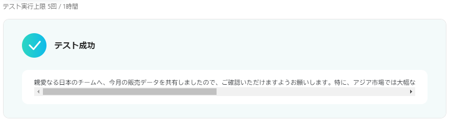 翻訳先言語に日本語と入力して、「再テスト」をクリックしてみます。