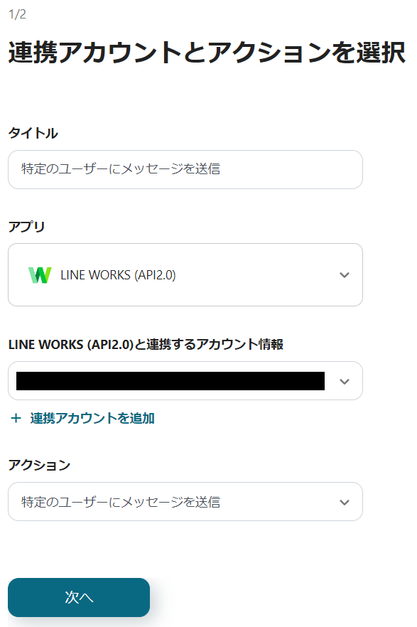「メッセージ」はご自身で変更できるので、お好みで入力しましょう。