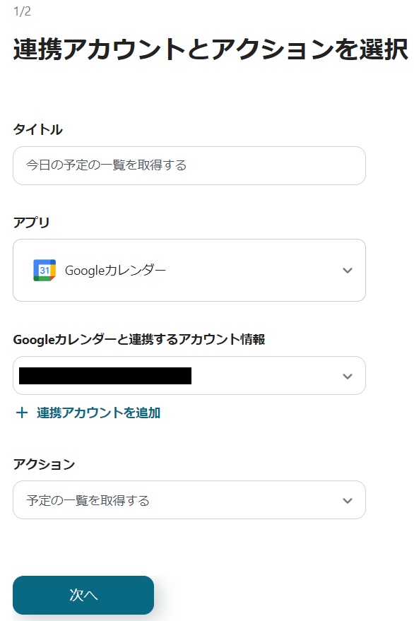 続いてGoogleカレンダーの今日の予定の一覧を取得する設定をするので、そちらをクリックしてください。