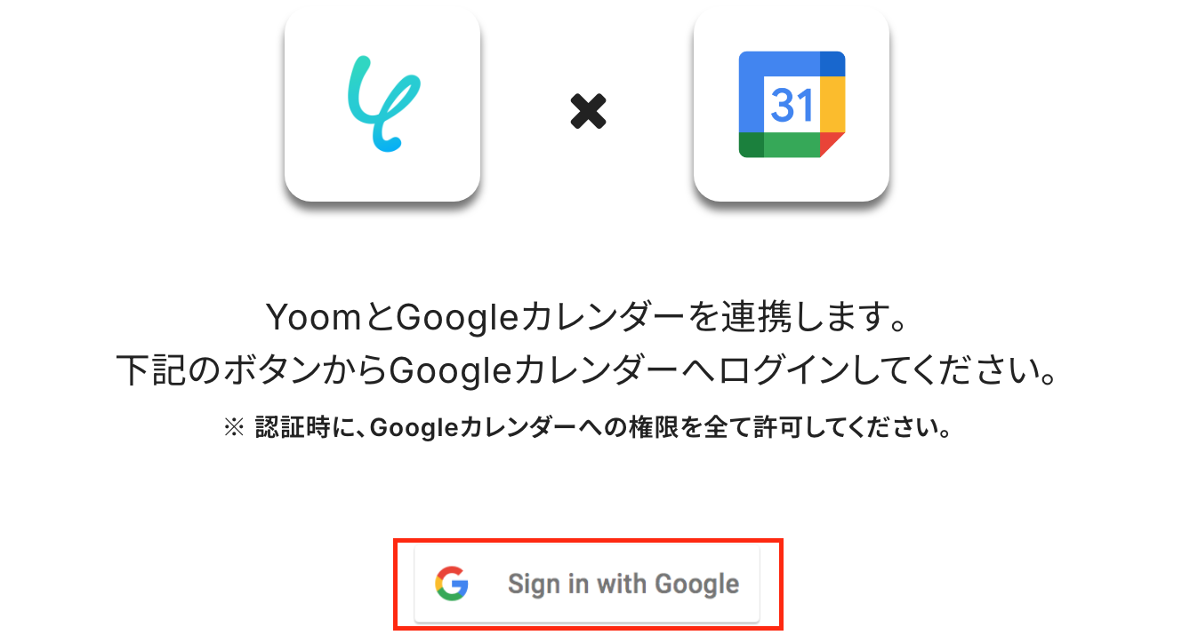 下記画面が表示されたら、赤枠部分の「Sign with Google」をクリックし、使用しているアカウントでログインしましょう。