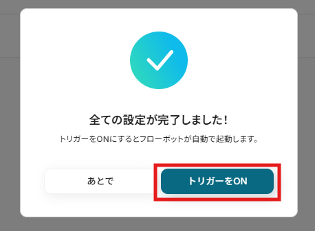 設定の完了後は、以下のようなポップが表示されるのでトリガーをONにします。