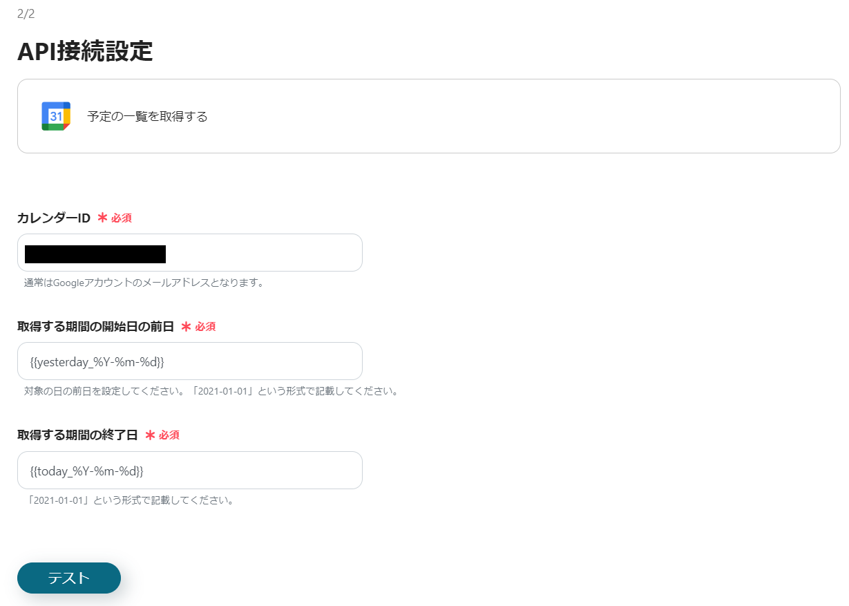 これで、Googleカレンダーのマイアプリ連携は完了です!