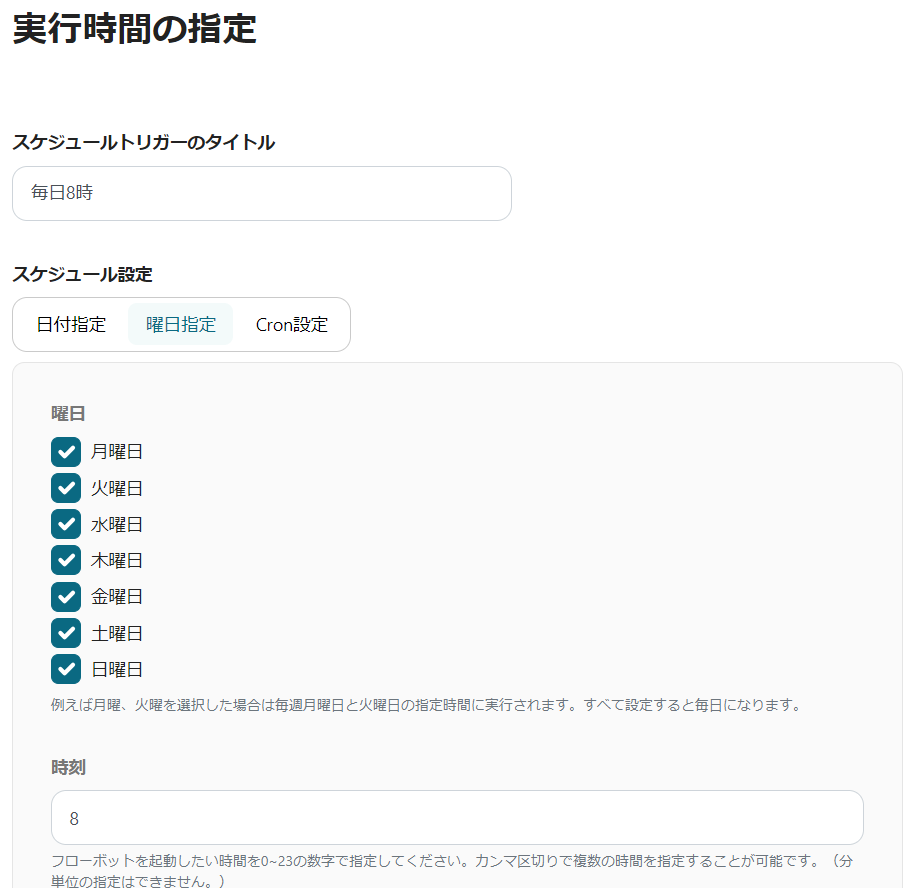 スケジュールトリガーの設定方法はこちらからご確認いただけます。