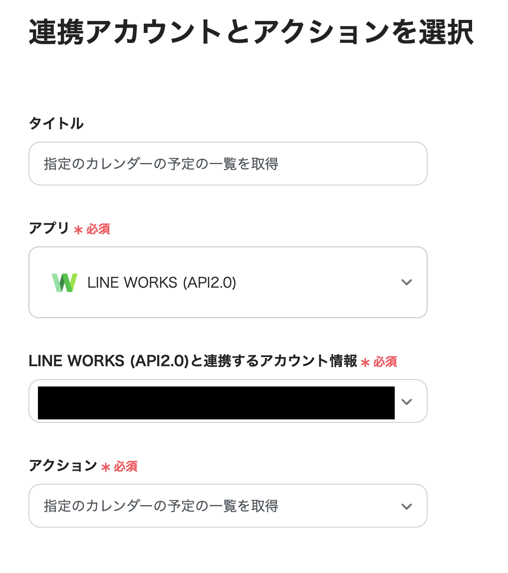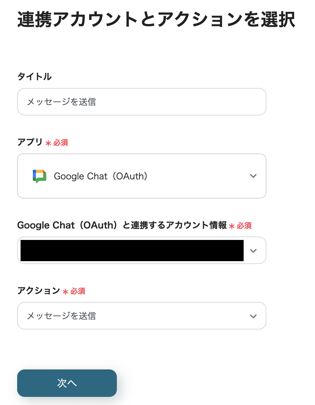 連携するアカウントとアクションを選択して「次へ」を押します。