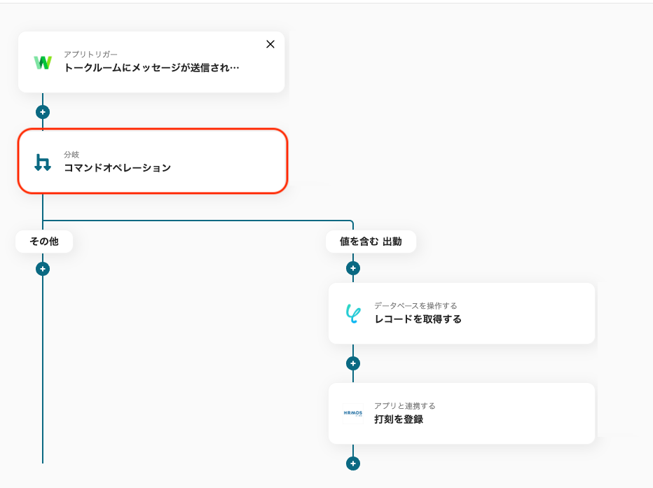※分岐をするにはミニプラン以上のプランでご利用いただける機能(オペレーション)となっております。フリープランの場合は設定しているフローボットのオペレーションはエラーとなりますので、ご注意ください。