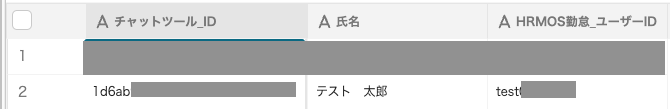 今回は、画像のように「チャットツール_ID」にLINE WORKSの送信元メンバーアカウントを登録しています。