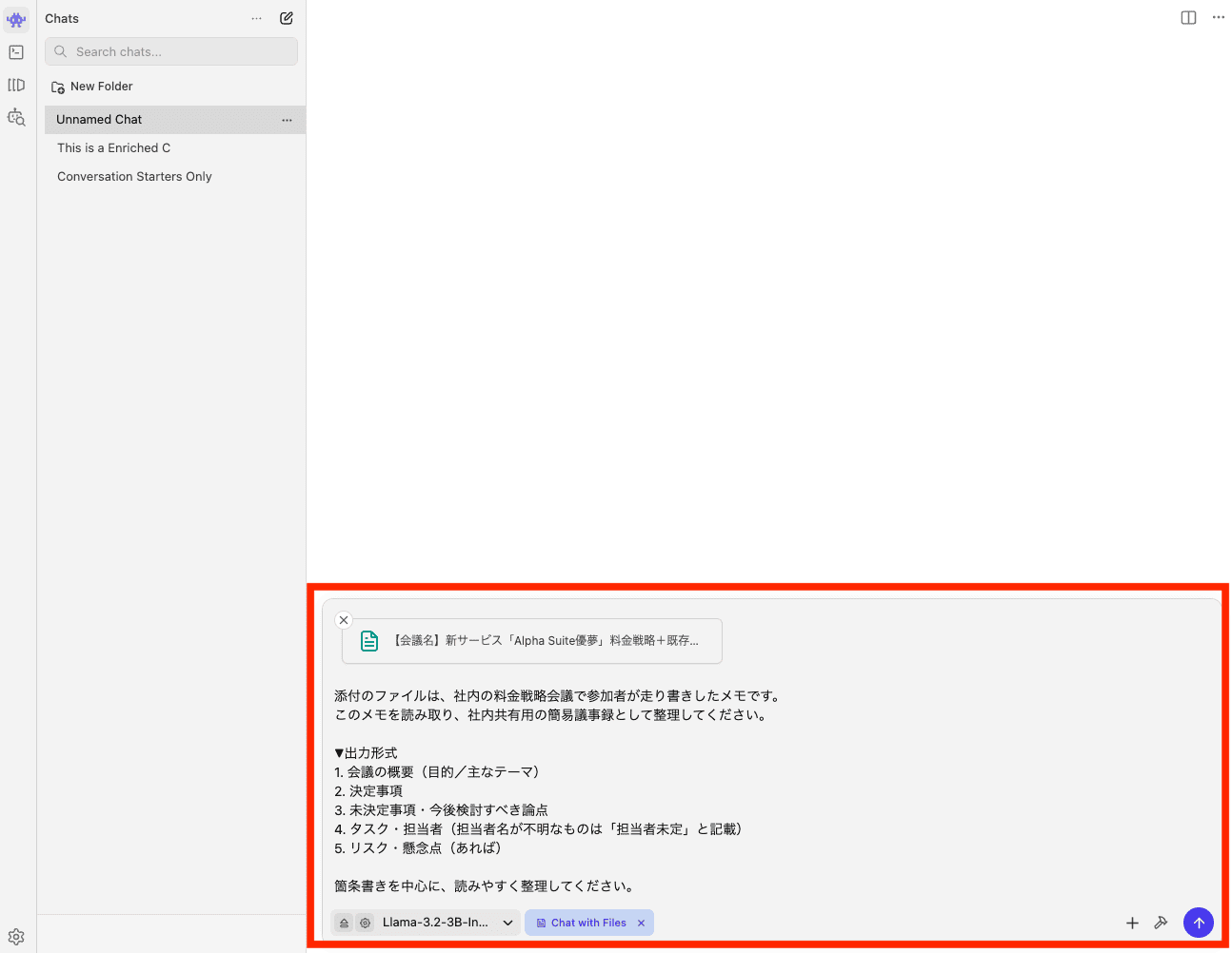 プロンプト+メモ全文をLM Studioで入力し、整理された議事録を作成してもらいます。