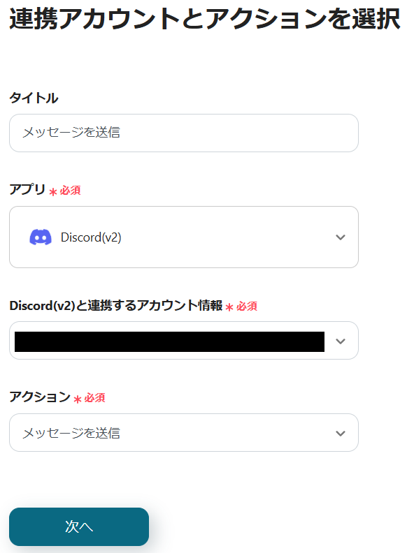 2.Discordと連携するアカウントを確認し、「次へ」をクリックします。