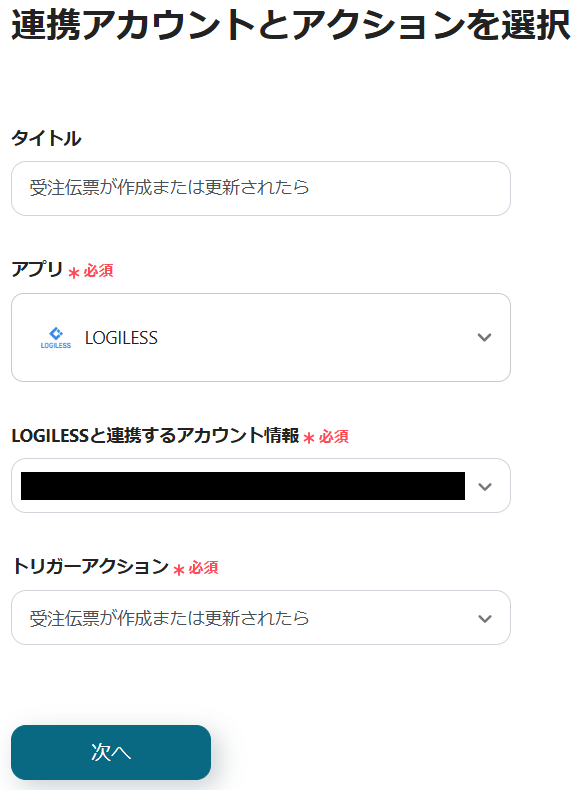 3.LOGILESSと連携するアカウントを確認し、「次へ」をクリックします。