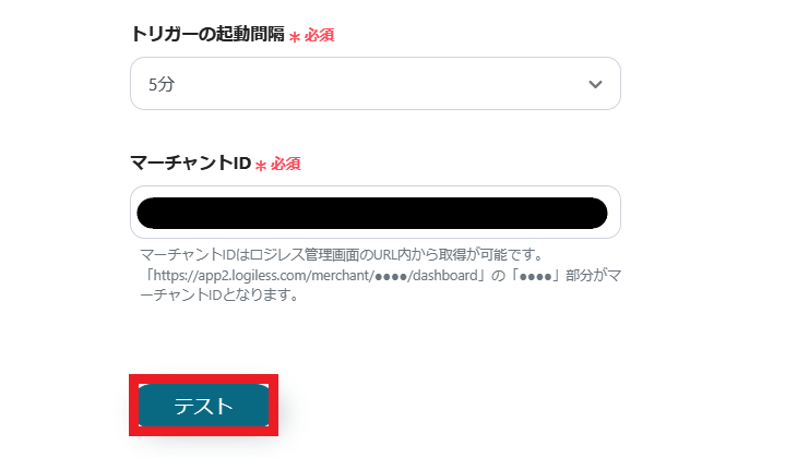 3.トリガーの起動間隔とマーチャントIDの設定をしてください。