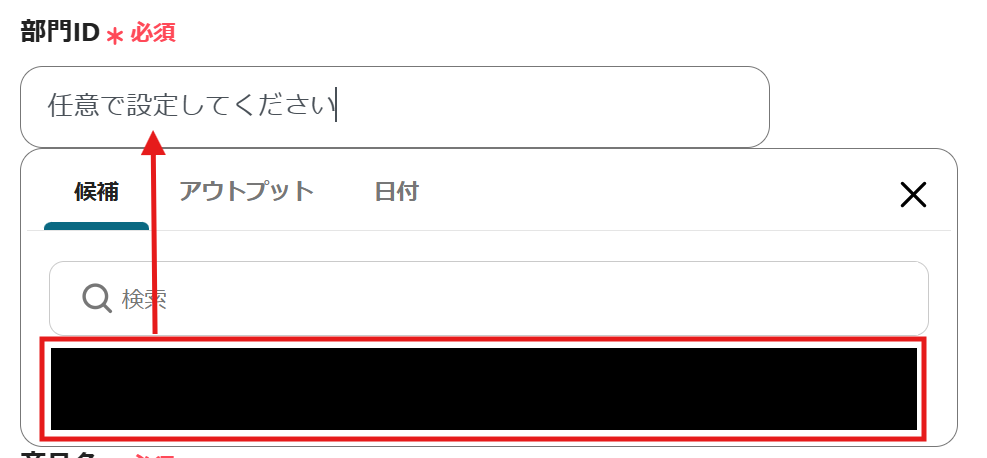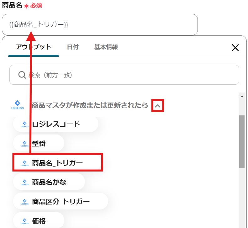 LOGILESSのアウトプットから「商品名_トリガー」を選択してください。