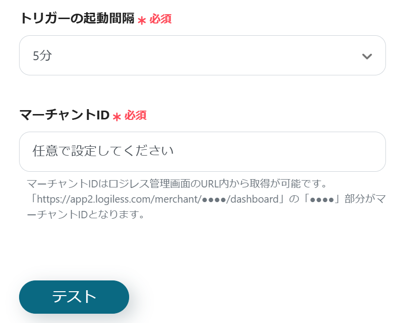 次に、「トリガーの起動間隔」と「マーチャントID」を設定しましょう。
