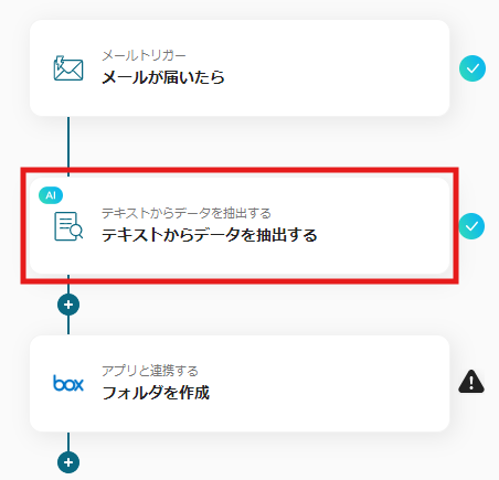 AIオペレーションとBoxを連携すると、メール受信時に特定の文章を取得し、Boxにフォルダを自動で作成することが可能になります。