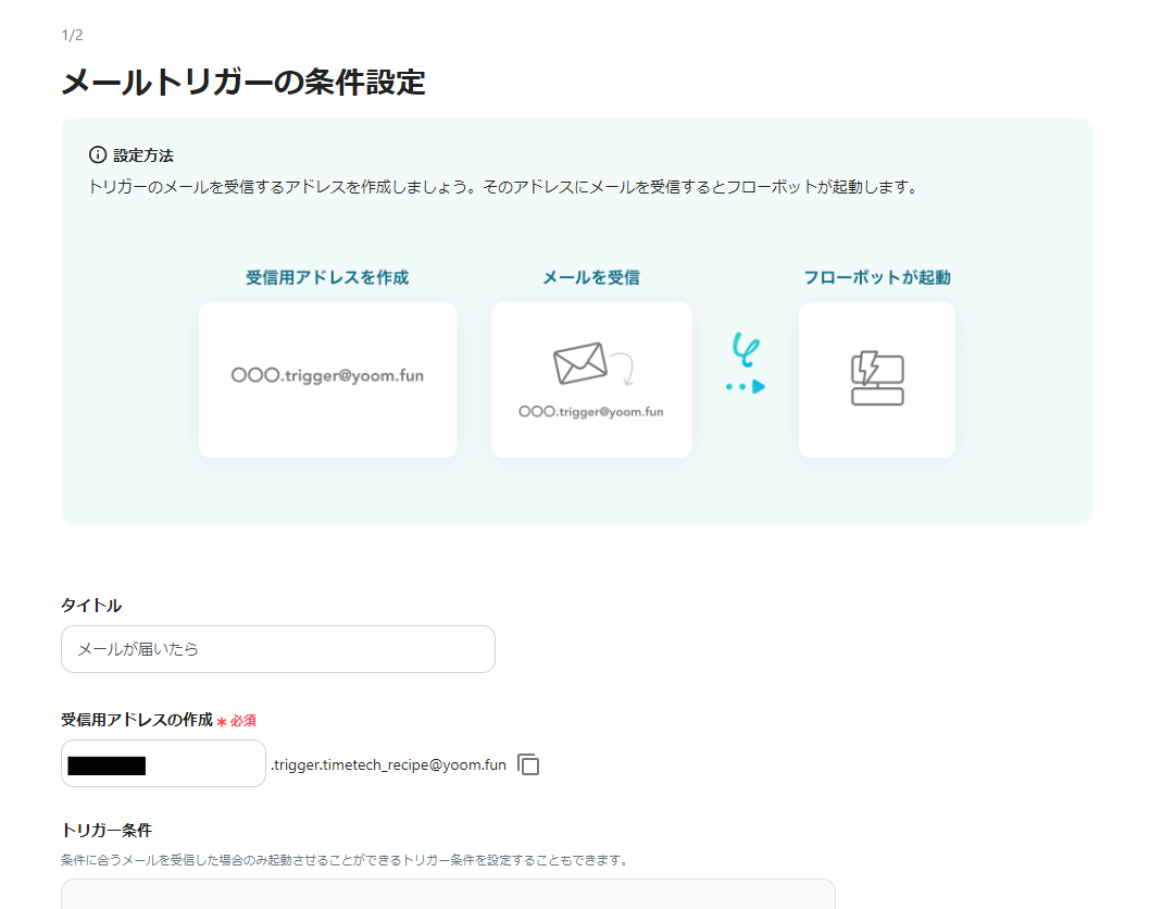 今回は、【メールを受信したら特定の文章を取得し、Boxにフォルダを作成する】というフローを作成してます。