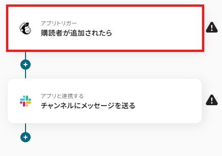 Mailchimpの「購読者が追加されたら」というアクションをフローの起点として利用することで、新しい購読者の情報を即座にSlackへ通知するフローを自動化でき、チーム内での迅速な情報共有や歓迎アプローチの検討が可能になります。