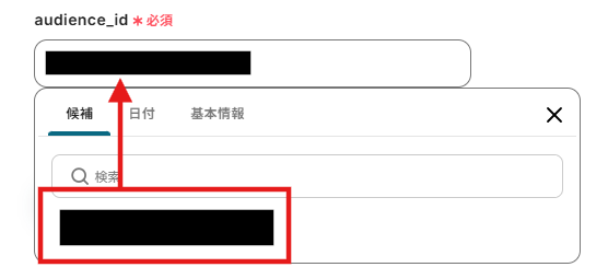 4.続いて「audience_id」の入力欄をクリックし、候補から選択してください。