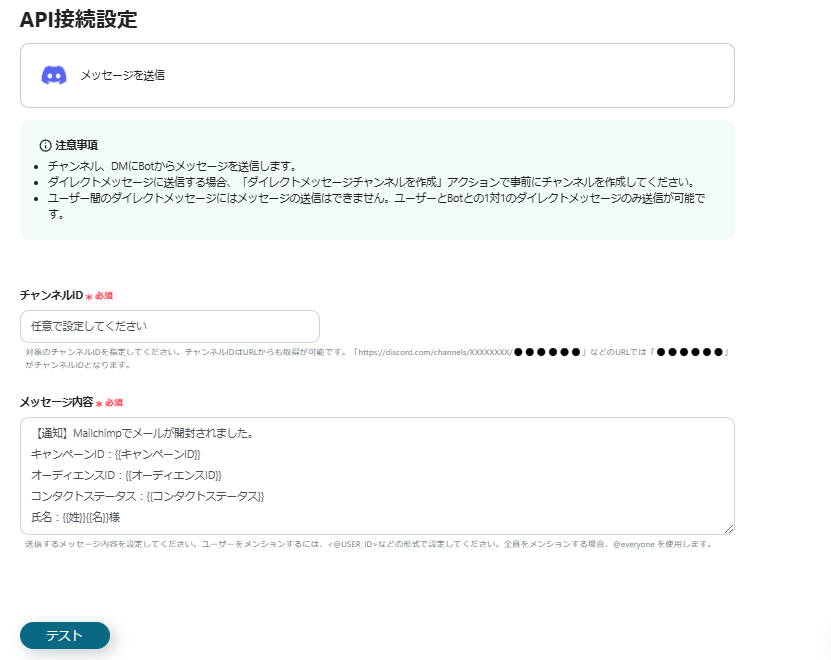 ・トリガーとなるMailchimpの設定と通知を受け取るDiscordの設定
