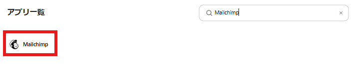 検索窓にMailchimpと入力し、候補に表示されたMailchimpをクリックしましょう。