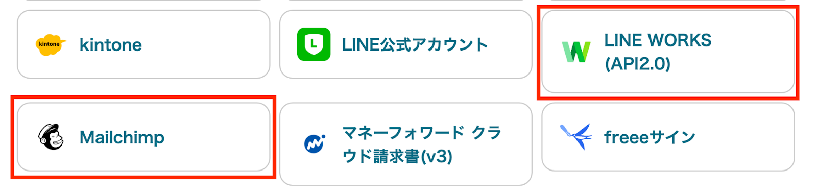 全部で28の候補があります。Mailchimpとの連携以外でもLINE WORKSを活用したいな…と思う方はぜひ参考にしてみてください。