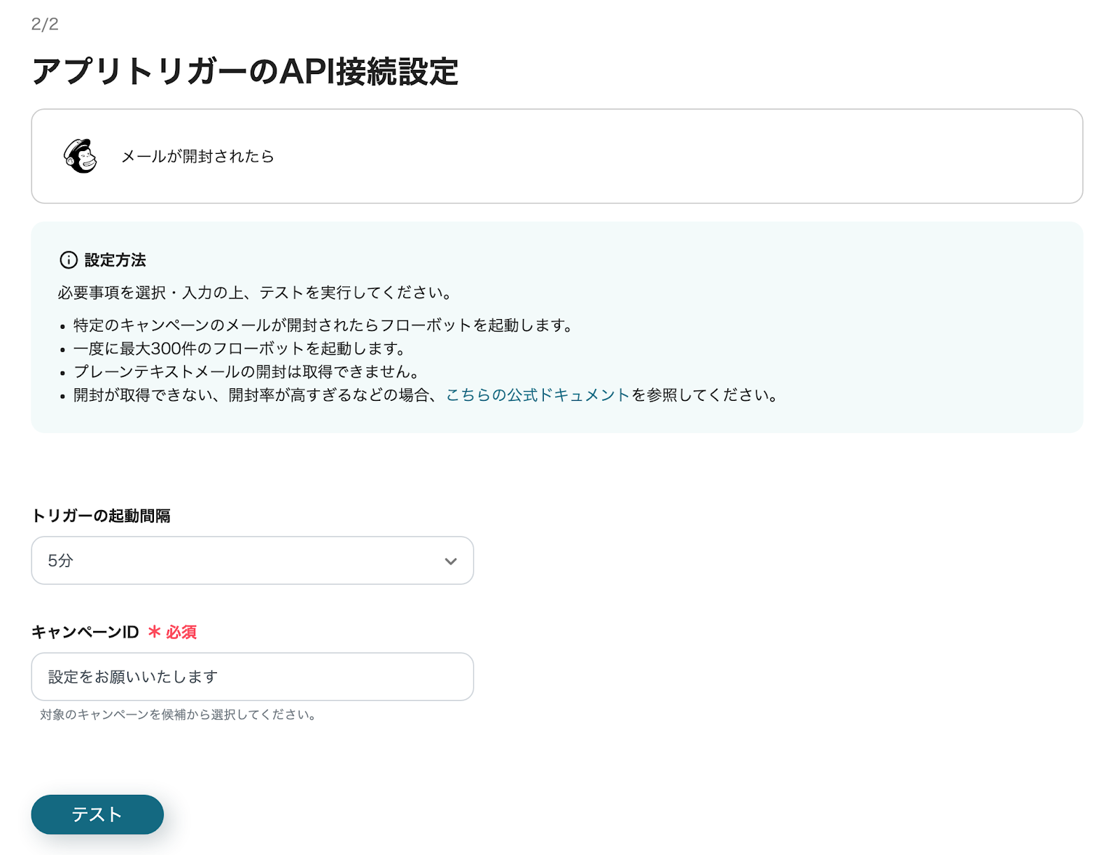 次のページでは、トリガーの起動間隔とキャンペーンIDを入力します。