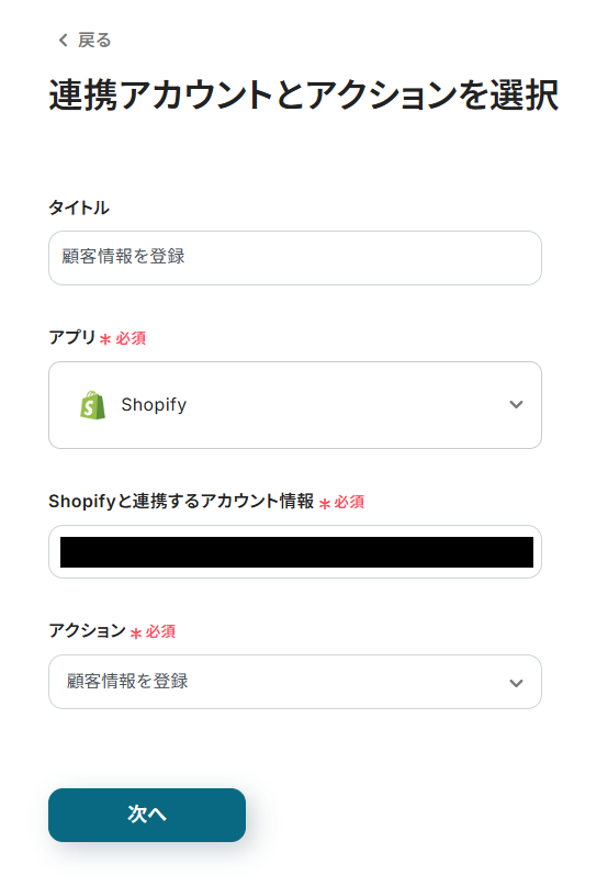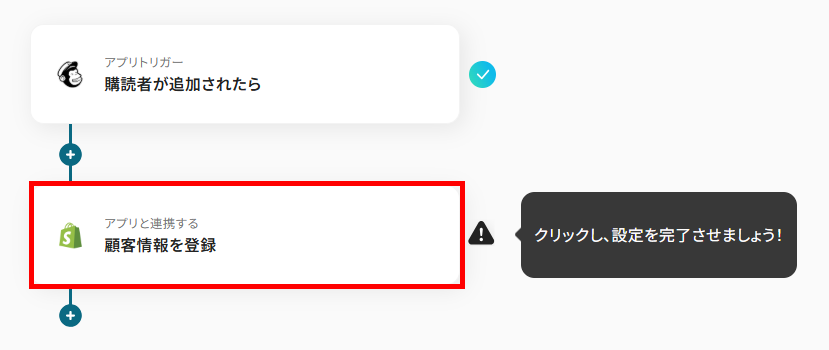 次に、Mailchimpから取得した値を利用して、Shopifyに顧客情報を登録する設定を行います。