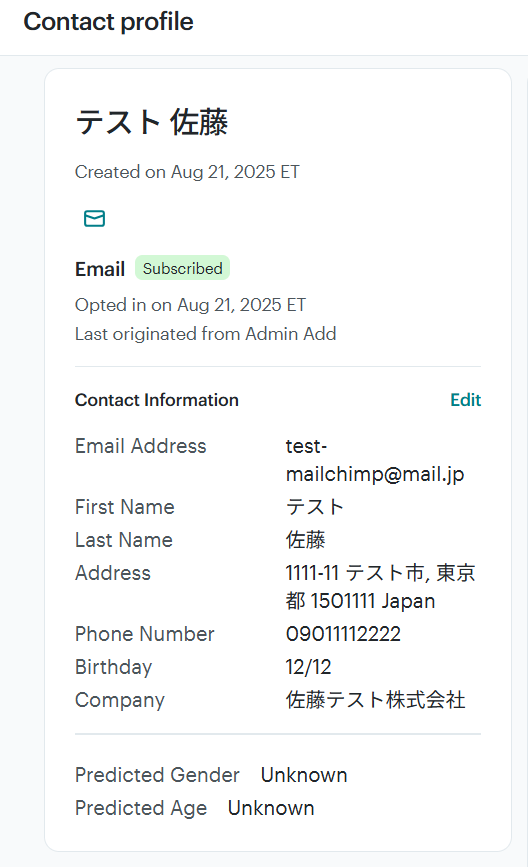設定が完了したら、テスト用にMailchimpに購読者を追加してください。