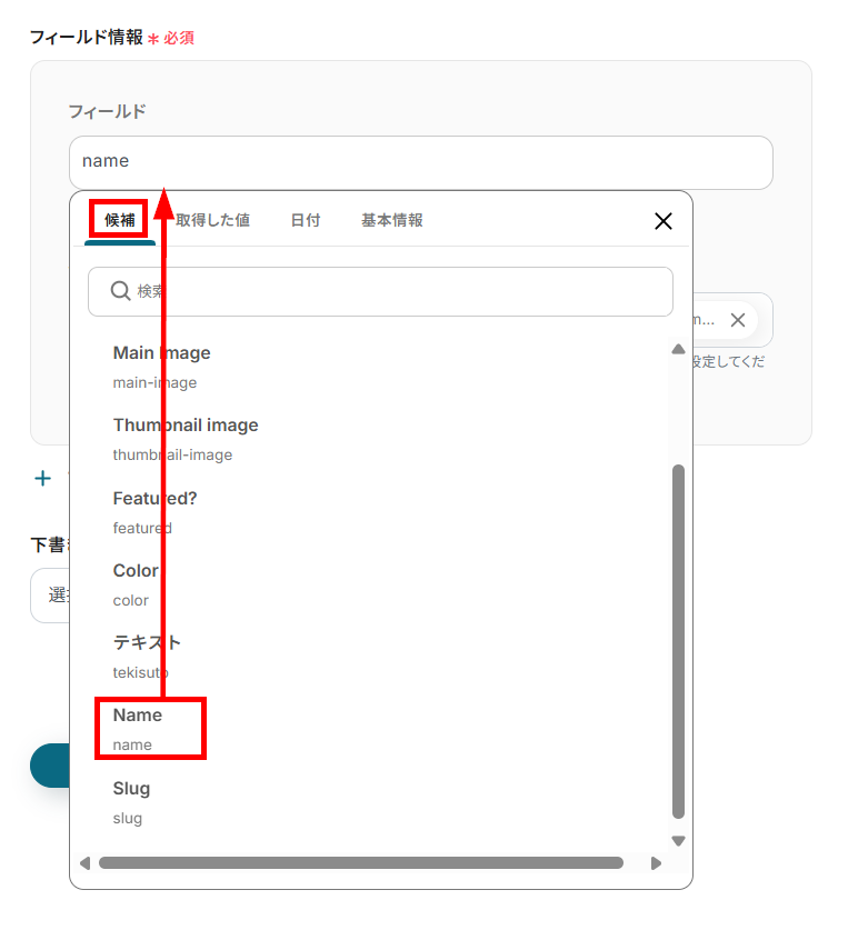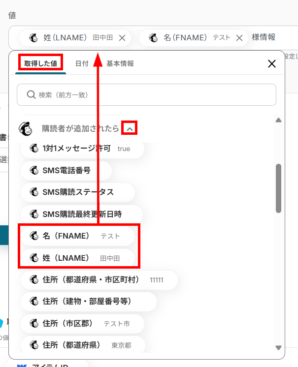 ※Mailchimpに登録した会社名やタグをWebflowに登録する場合は、取得した値に追加する必要があります。