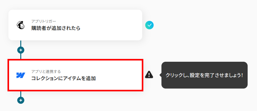 このワークフローを活用することで、MailchimpとWebflowをスムーズに連携させ、購読者情報が追加された際に自動でWebflowへアイテムとして登録される仕組みを構築し、こうした課題を解消できます。