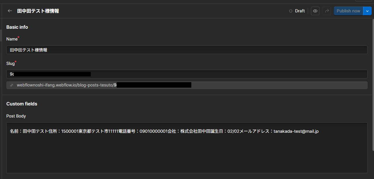この連携により、Mailchimpでのドラフト作成にあわせて、キャンペーン概要などの情報を記載したアイテムをWebflowに自動で追加できます。