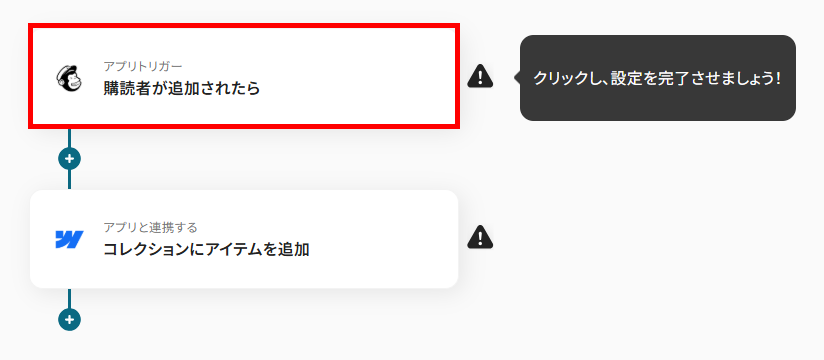 今回は、「Mailchimpで購読者が追加されたら、Webflowにアイテムを追加する」フローを作成していきます!