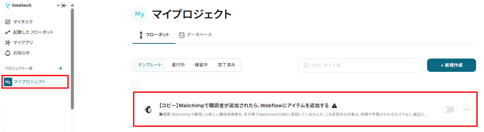 それでは、実際にMailchimpとWebflowを連携したフローを作成してみましょう。