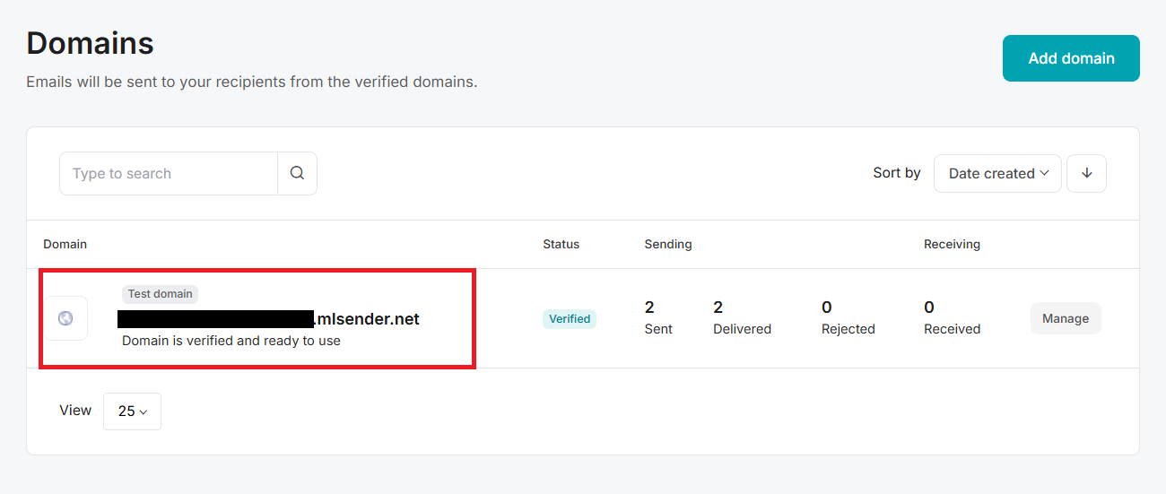 ドメインの確認画面にいくと表示される、下の赤枠のような実際に登録されているドメインをクリックしてください。